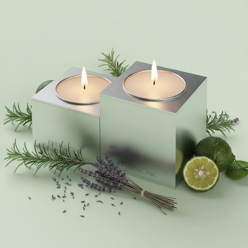 Materiali: alluminio satinato, cera di soia vegetale profumata