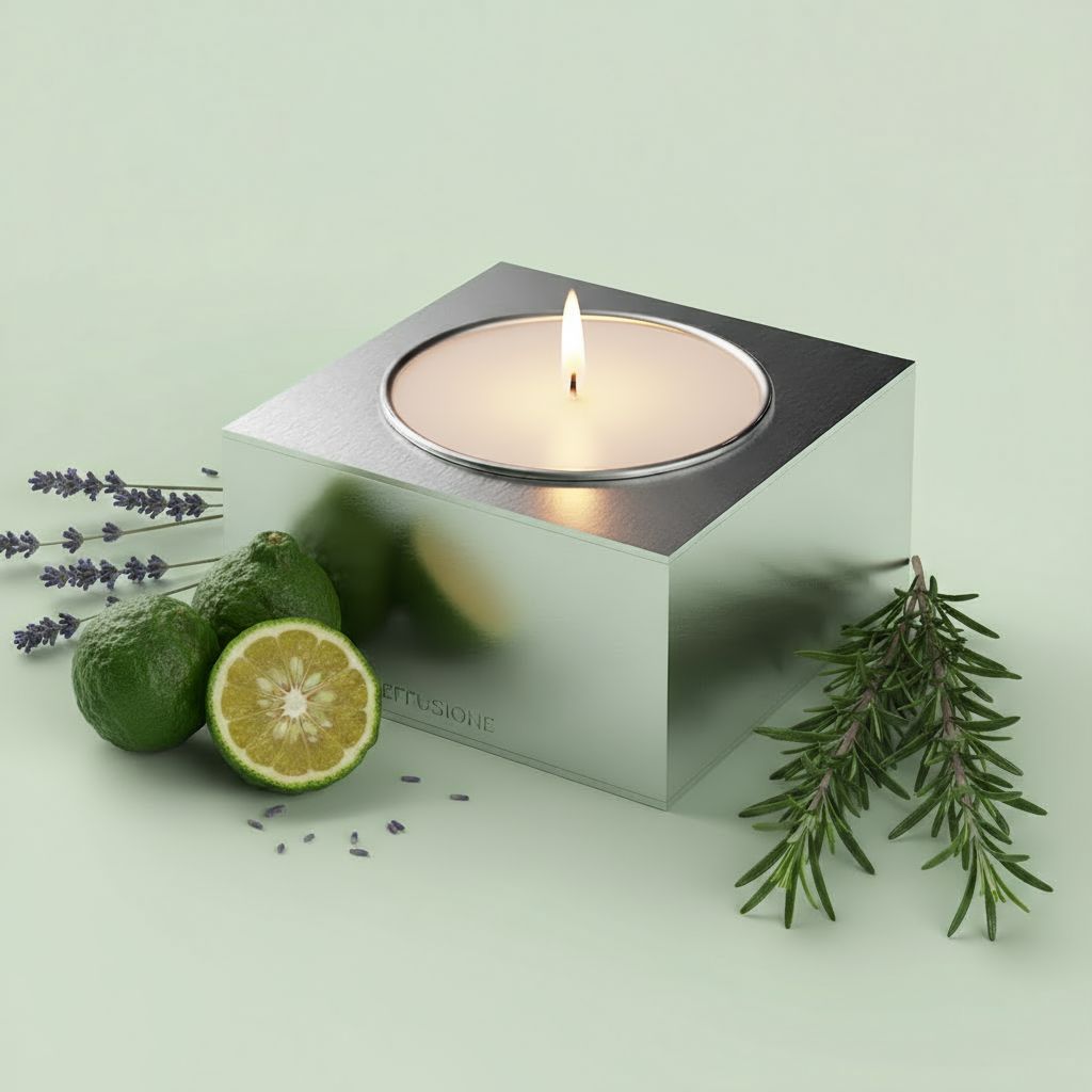 Materiali: alluminio satinato, cera di soia vegetale profumata